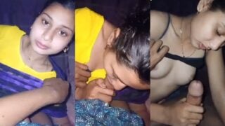 आज आप देसी पति को अपनी पत्नी के टाइट बूब्स चूसाते हुए अपनी पत्नी से अपने बडे लंड को चूसाते हुए का ब्लोजॉब वीडियो का आनंद लोगे. ठरकी पति बिस्तर मे लेटकर अपना बडा लंड को हिलाते हुए हाथो मे मोबाइल लेकर अपनी पत्नी का वीडियो बनाने लगा. पत्नी भी पति के जांघो मे बैठके उसके बडे लंड को हाथो मे लिये मुठ मारने लगी. फिर पति ने पत्नी की ब्लाउज को ऊपर सरकाके ब्रा के अंदर कैद उसके छोटे छोटे टाइट बूब्स को बाहर निकालके उनको दबाने लगा. फिर पत्नी ने भी झूक्के पति के बडे लंड को अपनी जीभ से चाटते हुए पति के बडे मुँह मे लेकर मुखमैथुन देते लगी. पति भी ब्लोजॉब का मजा लेटे हुए वीडियो बना रहा है.