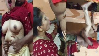 देसी गाँव के पति पत्नी दिन भर कमरे मे बंद चुदाई का मजा ले रहे है. इन दोनों ने कमरे का कोई कोना नहीं छोड़ा जहाँ इन दोनों ने चुदाई ना की हो. पति अपनी पत्नी को पकड़ उसकी सूट को ऊपर कर उसके मोटे गोरे बूब्स को दबाता है और पत्नी को चूमते हुए उसके बडे बूब्स को चूसता है. फिर पत्नी पति के लंड के आगे बैठ जाती है पति अपना निक्कर को नीचे कर अपना बडा लंड पत्नी से चुसवाता है. लंड को चूसकर पत्नी लंड को खड़ा कर देती है. फिर पति पत्नी को अलग अलग पोज़ मे कमरे के हर एक कोने मे लेजाके चोदता है. कभी पति पत्नी को बिस्तर मे कुतिया बनाके चोदत्ता है तो कभी लेटाके. कभी पत्नी को दिवार के सहारे खड़ा कर उसके टांग को उठा पीछे से चोदत्ता है. दोनों की ये जोरदार चुदाई पुरे दिन चली.