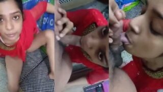 लाल कुर्ती पहने जवान गर्लफ्रेंड को लंड चूसाकर चोदा